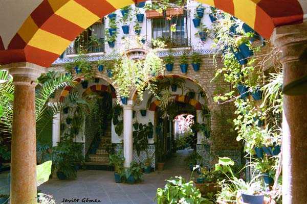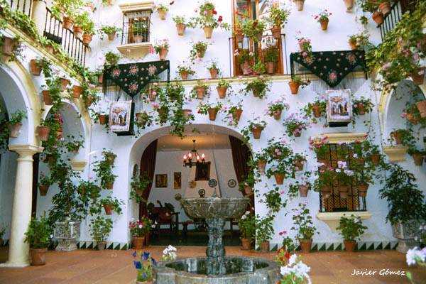 Aparte de la masificación turística, ver los Patios de Córdoba en todo su apogeo es un deleite. Tienen un arte especial para decorarlos: más y más geraneos de todas las clases y colores cubren las fachadas de sus patios interiores; las sillas de pita y madera, las guitarras andaluzas, las rejas, los mantones de manila, o los abanicos para quitarse «la caló», y esa manzanilla tan rica; y para comer, esos sabrosísimos flamenquines, o el fresquito salmorejo…